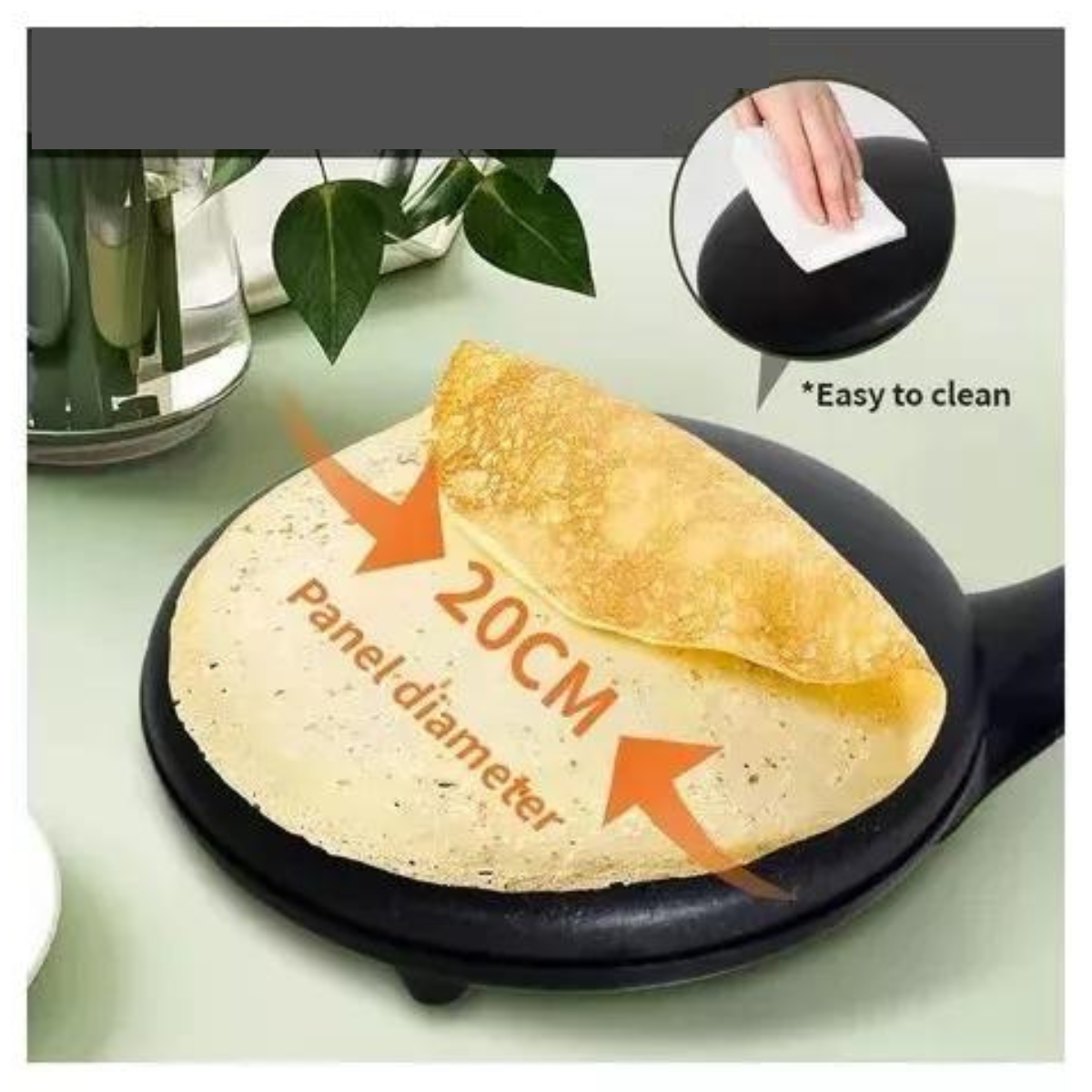- Crepes en un Instante: El diseño estilo sartén completa y el mango largo facilitan la cocción uniforme, ideal para preparar desayunos rápidos o deleitar a tus invitados en cualquier momento.